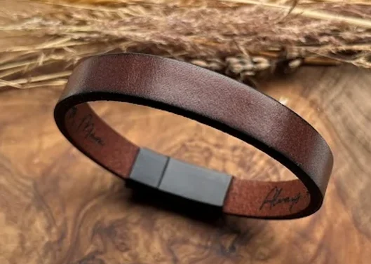 Las pulseras de cuero son accesorios versátiles y atemporales. Personalizar una pulsera de cuero con tu nombre, iniciales o un diseño significativo puede convertir una simple pulsera en un accesorio cargado de significado personal. Estas pulseras pueden ser elegantes o casuales, adecuándose a cualquier ocasión.