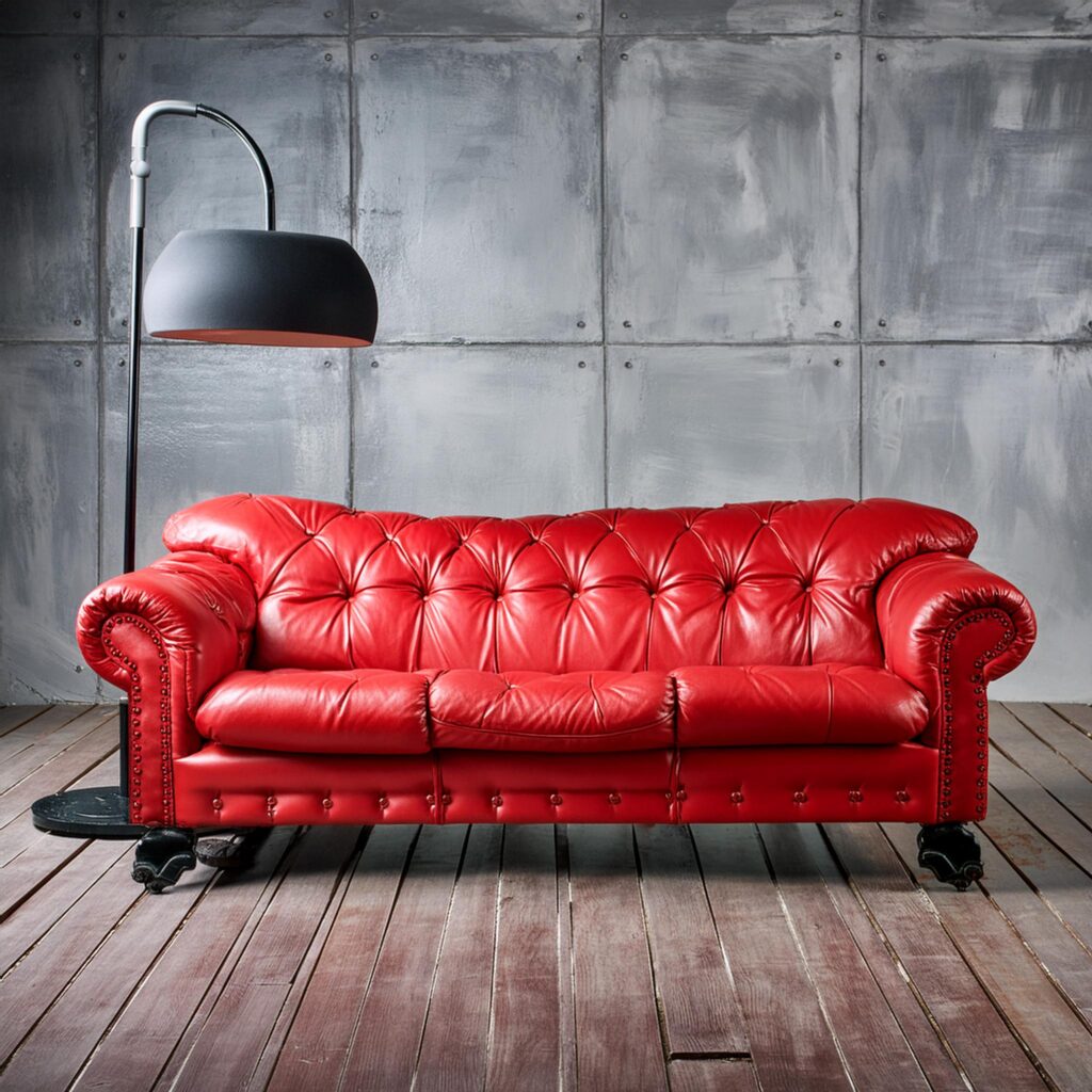 7. Sofá de Cuero Color Rojo Vivo