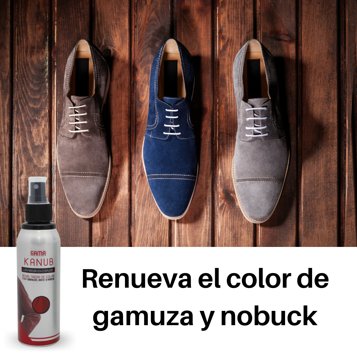 Kanub es un limpiador y resaltador de color para gamuza, ante y nobuck. No requiere enjuague porque no está compuesto de detergente, remueve grasa y suciedad con gran desempeño, a su vez intensifica el color original del artículo, con lo que se combate el descoloramiento natural que sufren estos cueros afelpados con la exposición al sol y a la lluvia.
