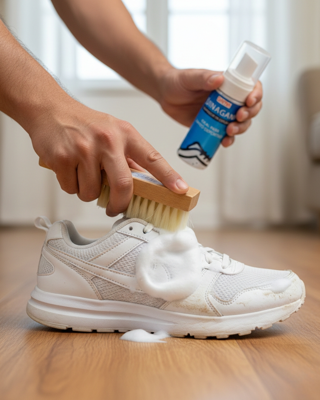 Este limpiador de zapatos en espuma no es peligroso para la piel.